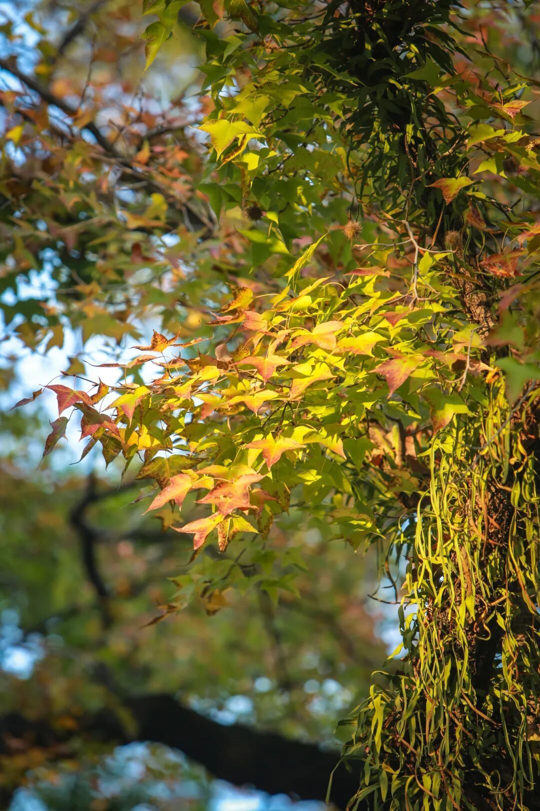 第一缕阳光穿过人民公园的树木